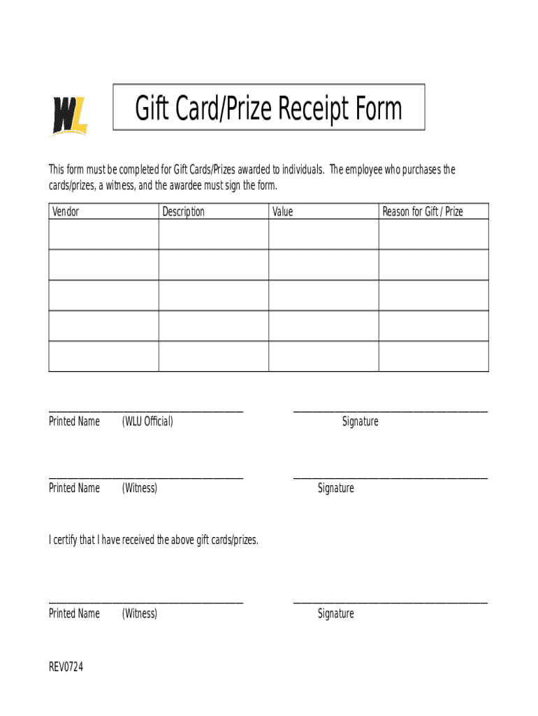 The This must be completed for Gift Cards/Prizes awarded to individuals is a Word document required to be submitted to the specific address in order to provide some information. It has to be filled-out and signed, which may be done manually in hard copy, or via a particular solution such as PDFfiller. It helps to fill out any PDF or Word document directly from your browser (no software requred), customize it according to your requirements and put a legally-binding e-signature. Once after completion, you can send the This must be completed for Gift Cards/Prizes awarded to individuals to the relevant person, or multiple individuals via email or fax. The editable template is printable as well due to PDFfiller feature and options proposed for printing out adjustment. Both in digital and physical appearance, your form should have a neat and professional appearance. You may also turn it into a template for later, there's no need to create a new file from scratch. All you need to do is to amend the ready form.