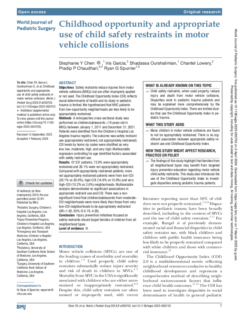 Open accessOriginal researchStephanie Y Chen ,1 Iris Garcia,2 Shadassa Ourshalimian,1 Chantel Lowery,2 Pradip P Chaudhari,3,4 Ryan G Spurrier1,5 To cite: Chen SY, Garcia I, Ourshalimian S, et al.