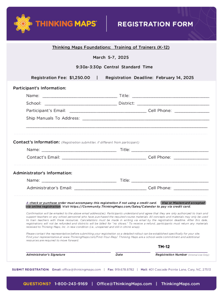 Get the free Thinking Maps Foundations: Training of Trainers Registration Form