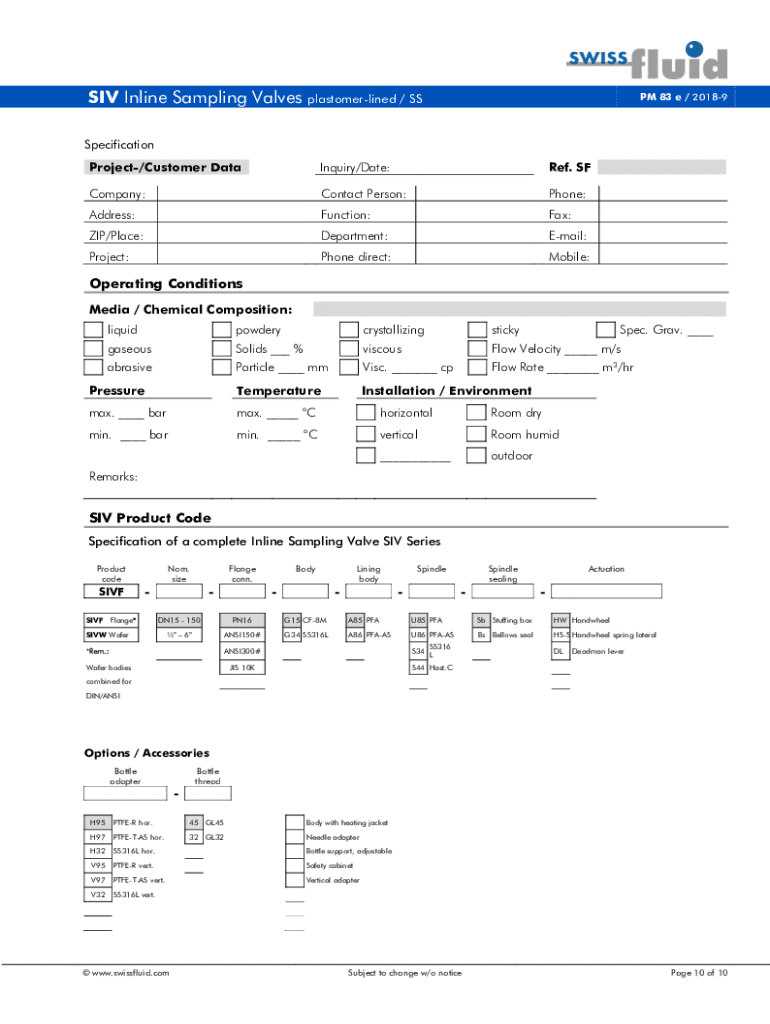 Siv Inline Sampling Valves is not the form you're looking for?Search for another form here.