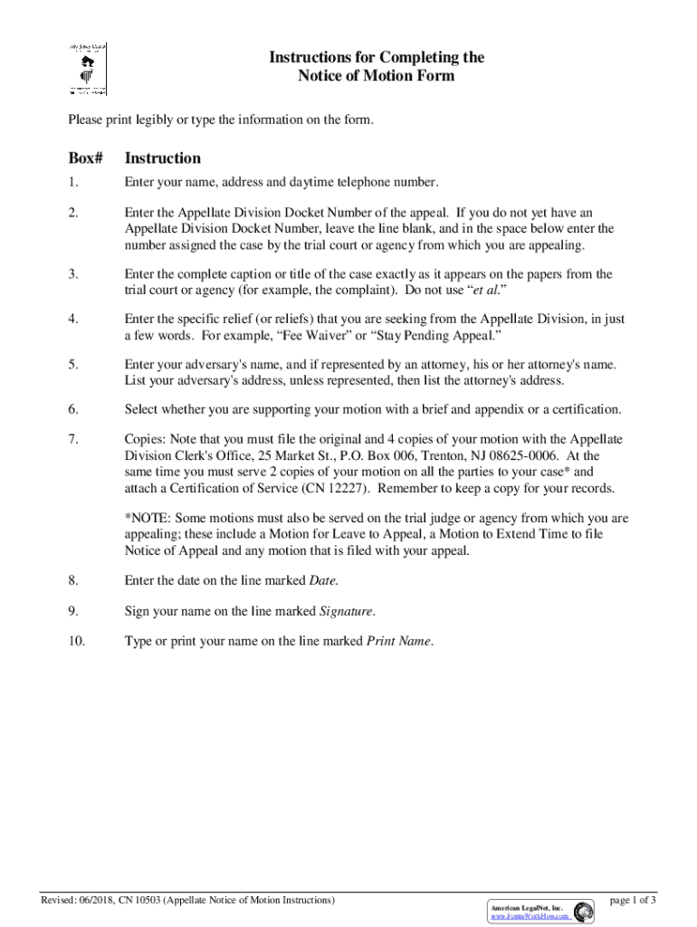 How to fill out notice of motion form