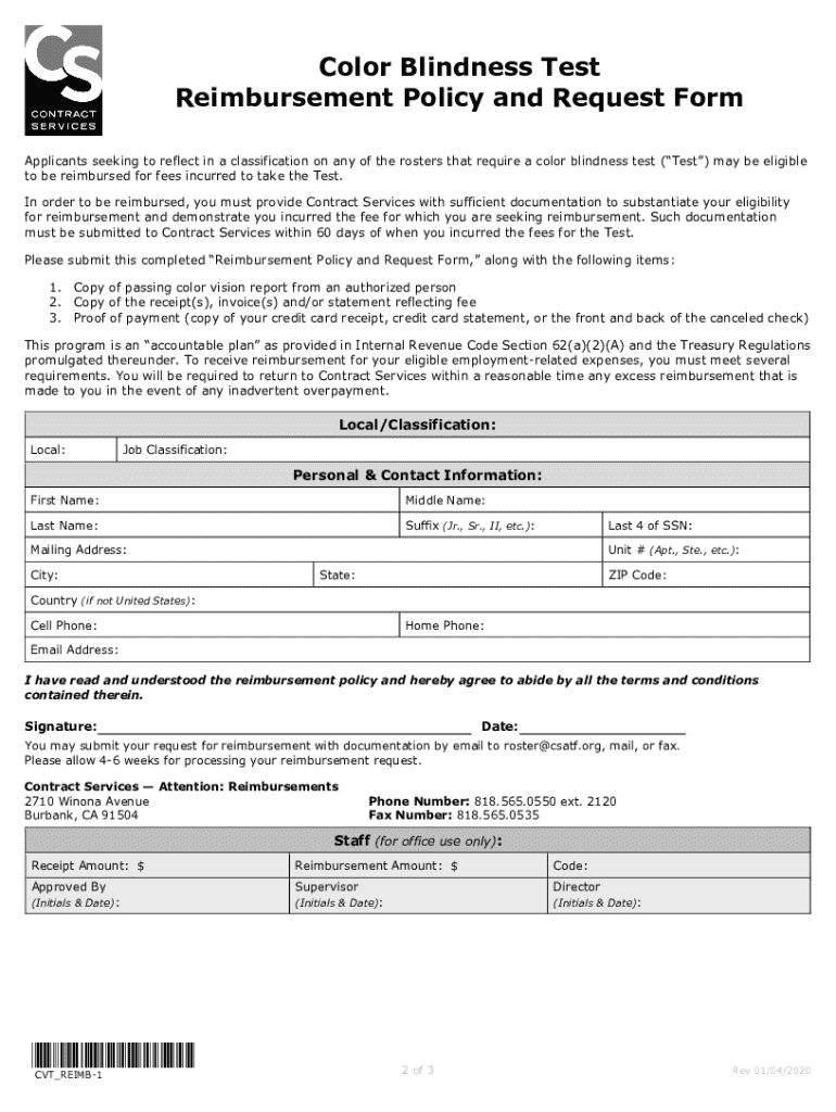 Color Blindness Test Reimbursement is not the form you're looking for?Search for another form here.