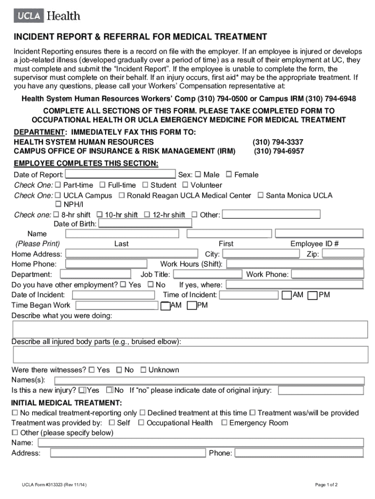 Este formulario debe ser completado por el empleado que ha sufrido una lesión o enfermedad relacionada con el trabajo en UC. Se requiere que se complete toda la sección correspondiente y se entregue