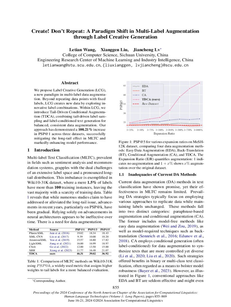 Create! Dont Repeat: A Paradigm Shift in MultiLabel Augmentation through Label Creative Generation Letian Wang, Xianggen Liu, Jiancheng Lv* College of Computer Science, Sichuan University, China Engineering