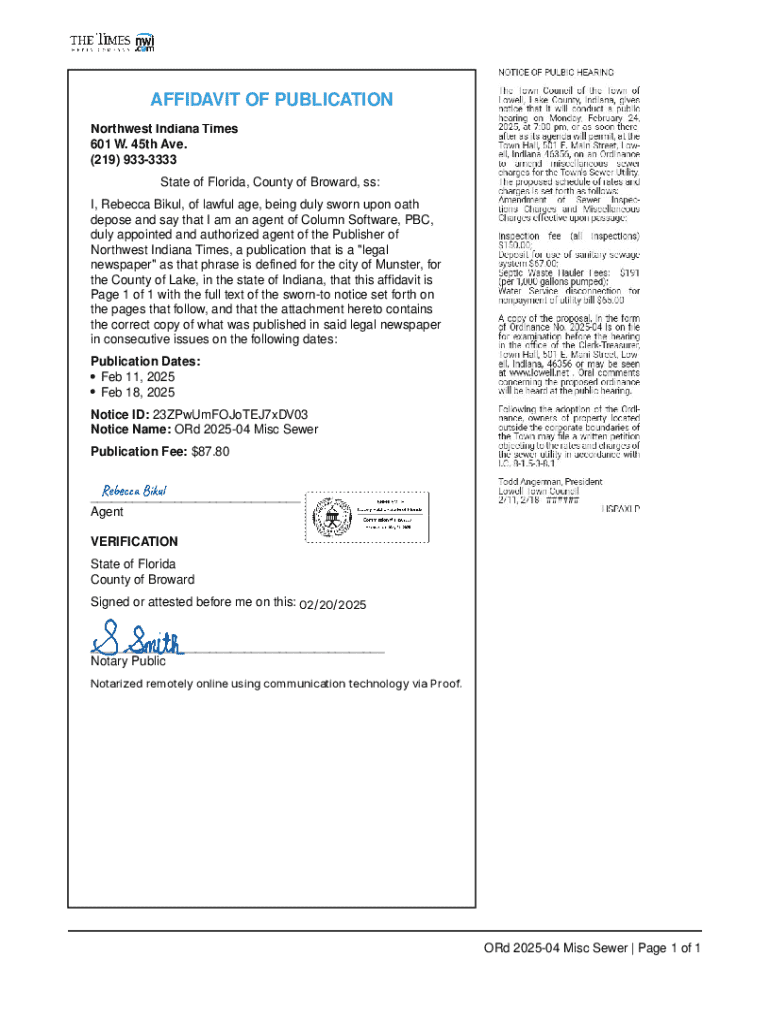 Edit your affidavit of publication form online