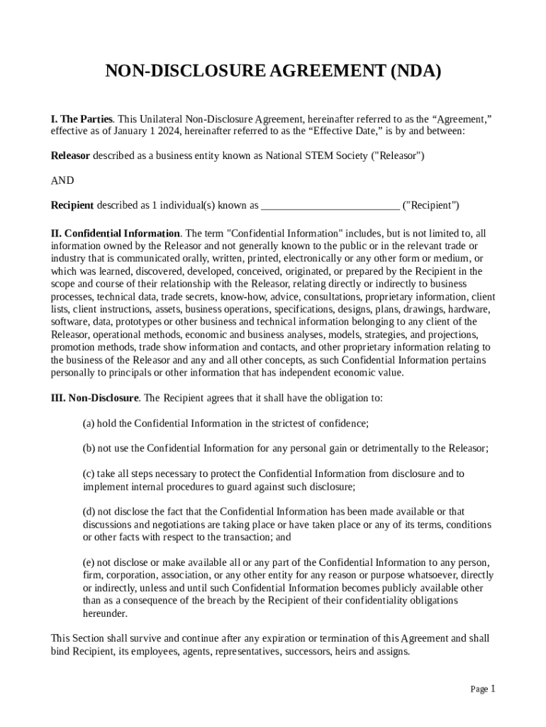 A non-disclosure agreement (NDA) is a legally binding contract that establishes a confidential relationship between parties. It outlines the sensitive information that one party must not disclose to others.