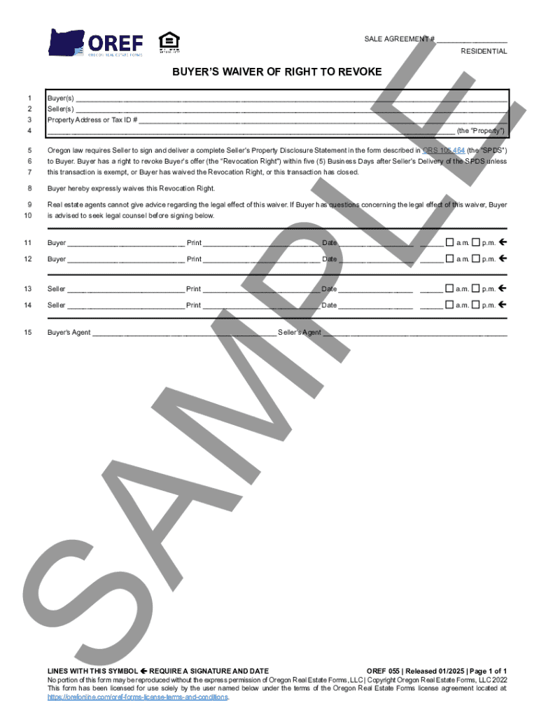 This document is a waiver by the buyer of their right to revoke an offer after receiving the Seller\'s Property Disclosure Statement (SPDS) under Oregon law. It highlights the buyer\'s acknowledgment
