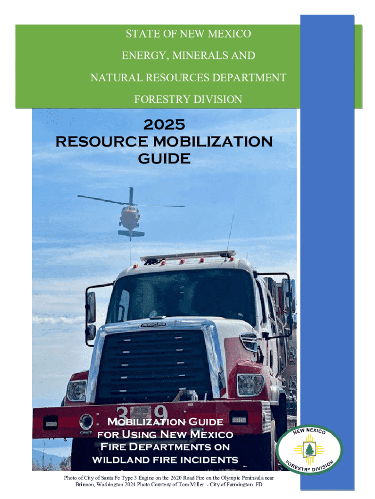 Este documento proporciona un plan de movilización de recursos para el uso de departamentos de bomberos en Nuevo México durante incidentes de incendios forestales. Establece estándares, procedimientos