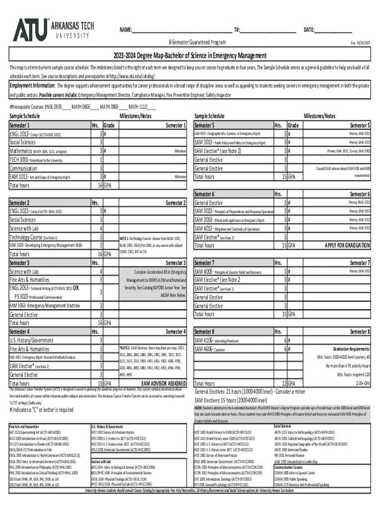 Get the free 2023-2024 Degree Map-Bachelor of Science in Emergency Management