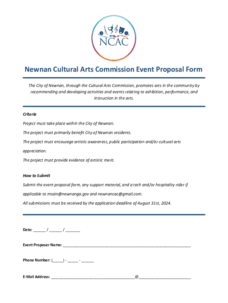 Get the free Newnan Cultural Arts Commission Event Proposal Form