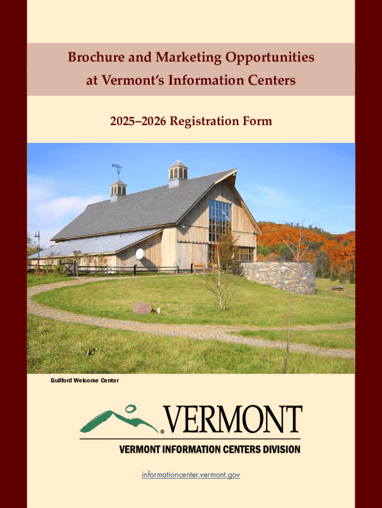 El formulario de registro de folletos para las oportunidades de marketing en los centros de información de Vermont que atienden a millones de visitantes anualmente, ofreciendo publicidad y visibilidad