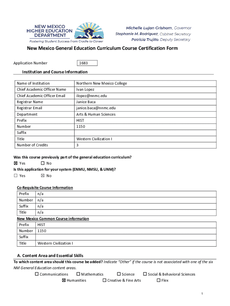 Get the free New Mexico General Education Curriculum Course Certification Form