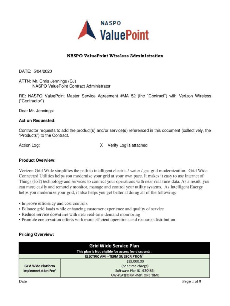 Public agencies that intend to use NASPO ValuePoint contracts for wireless services are required to file the NASPO ValuePoint Wireless Administration documentation.
