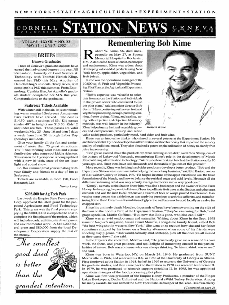 N E W * Y O R K S T A T E * A G R I C U L T U R A L * E X P E R I M E N T * S T A T I O NStation NewsCO RNELLU N I V E R S I T YGeneva Graduates Three of Genevas graduate students have earned their