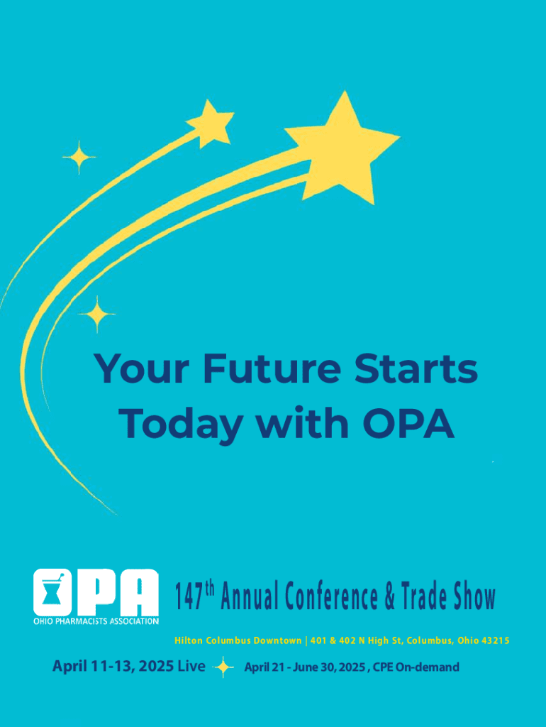 Your Future Starts Today with OPA147 th Annual Conference & Trade Show Hilton Columbus Downtown | 401 & 402 N High St, Columbus, Ohio 43215April 1113, 2025 LiveApril 21 June 30, 2025 , CPE Ondemand