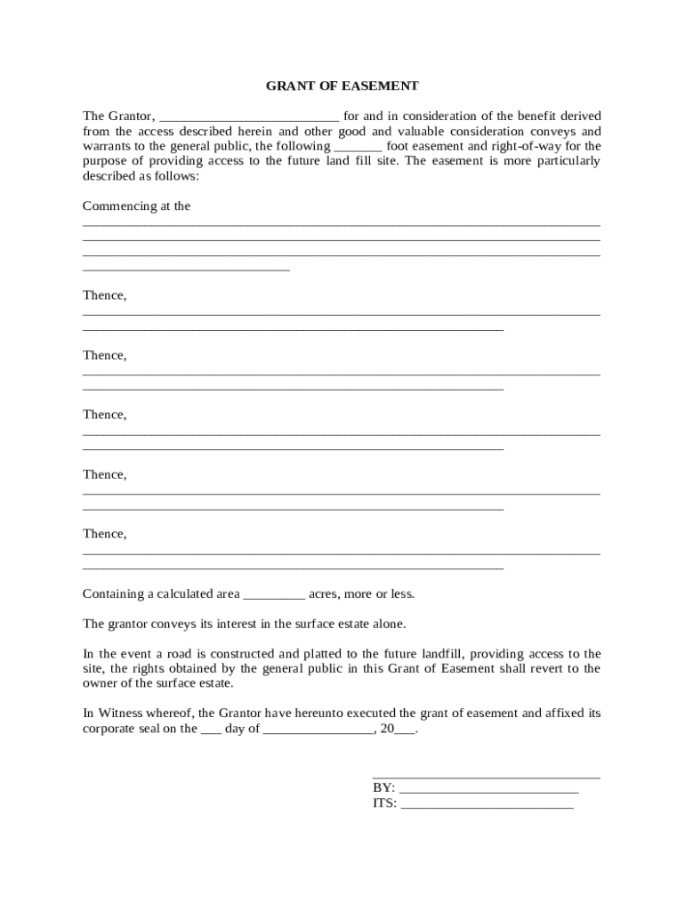 5.Specify the type of easement being granted (e.g., right of way, utility access, etc.).