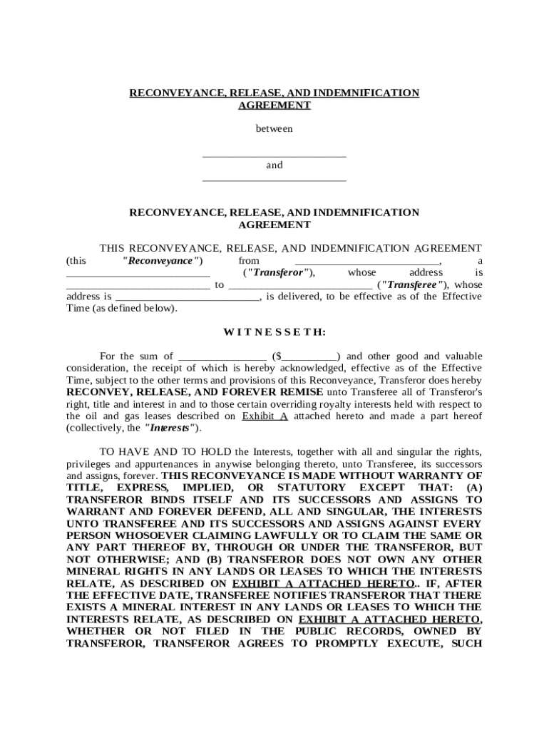 Get the free Reconveyance, Release and Indemnification Agreement template