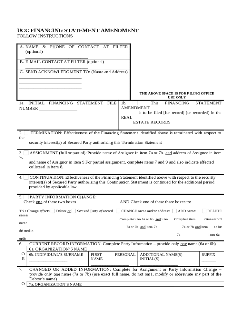 The UCC financing statement amendment form is essential for keeping your secured interests valid under the Uniform Commercial Code (UCC). Whether you're a business or an individual, knowing how to properly amend a financing statement is crucial for protecting your assets.