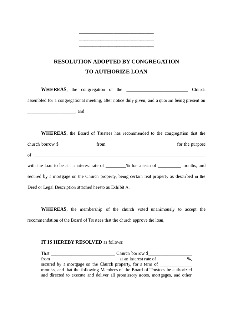 Get the free Church Resolution to Authorize Loan template