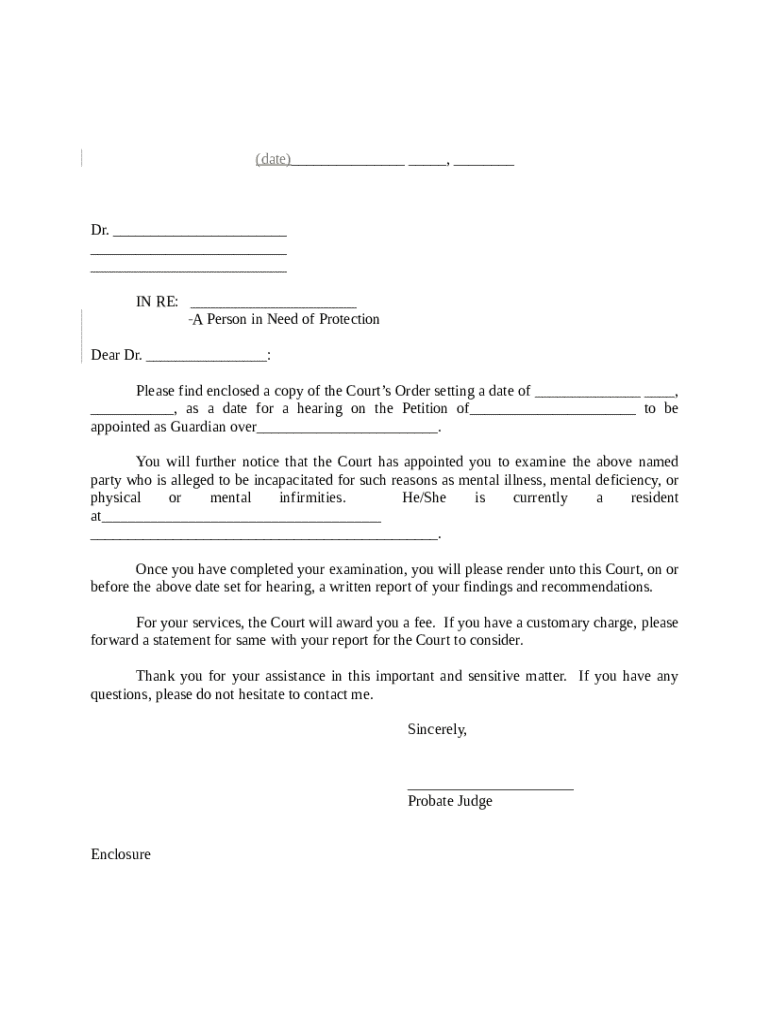 Get the free Probate Judge's Letter to Doctor template