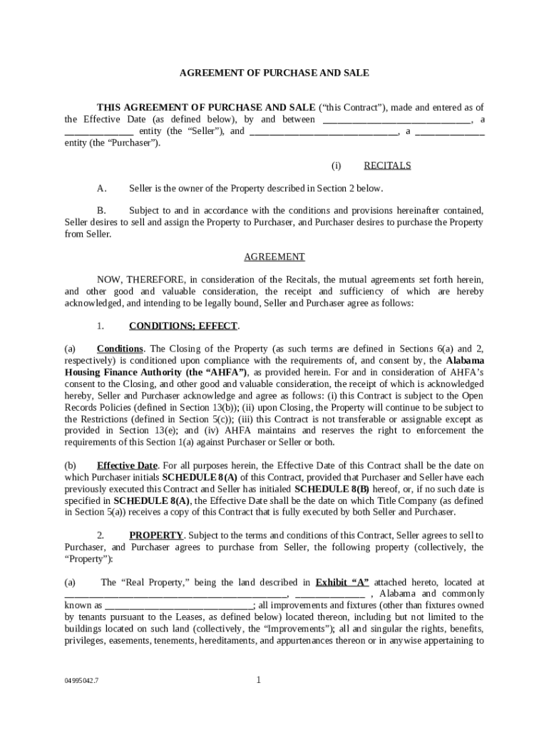 This an agreement to purchase real property. The transaction is conditioned upon compliance with the requirements of, and consent by, the Alabama Housing Finance Authority. The agreement provides