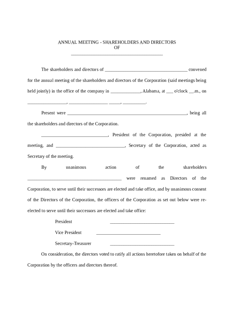 This form is a record of the annual meeting of the shareholders and directors of a corporation. The form is available in both word and word perfect formats.