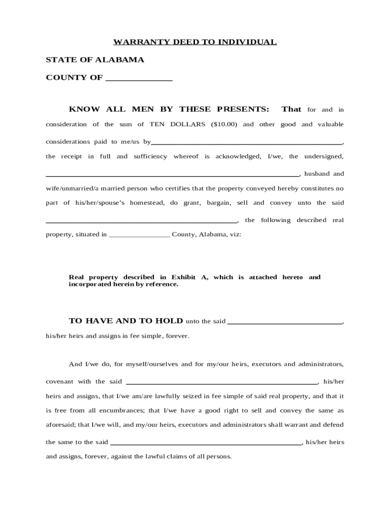 A warranty deed to individual is a legal document that transfers ownership of real property from one person to another, guaranteeing clear title and protection against claims.