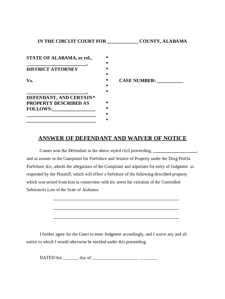 Get the free Answer of Defendant to the Complaint for Forfeiture and Seizure of Property template
