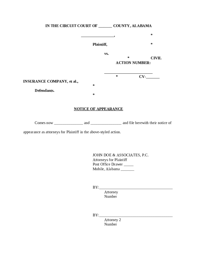 Filing a Notice of Appearance in Alabama carries legal weight and may affect timelines for responses and the overall strategy for the case, so it must be completed accurately and promptly.