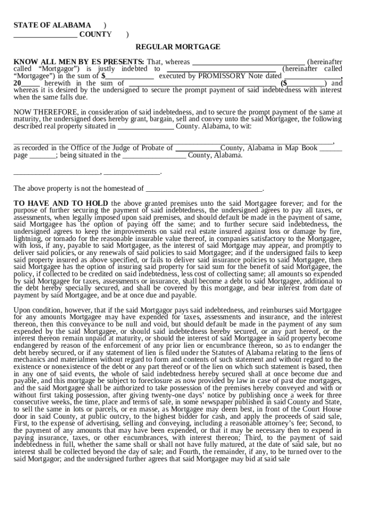 Alabama has distinct laws governing real estate mortgages that must be adhered to when filling out this form.