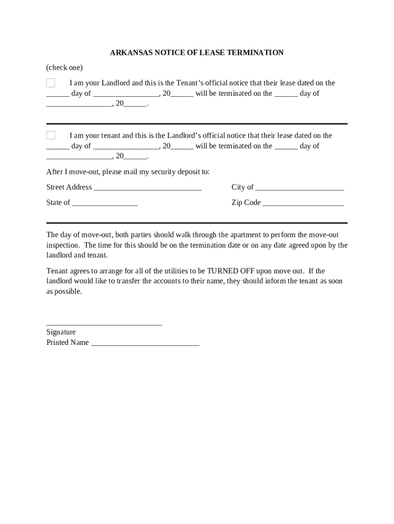 A notice of lease termination is a formal notification from a landlord or tenant indicating the intention to end a lease agreement.
