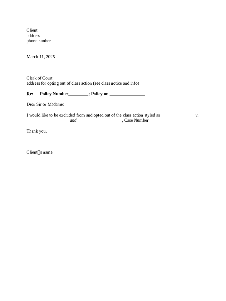 Get the free Exclusion letter from class action template