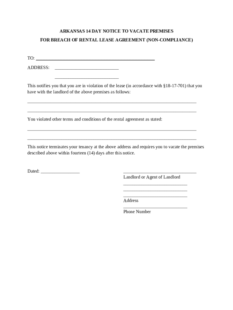 Get the free 14 Day Notice to Vacate Premises for Non-Compliance template