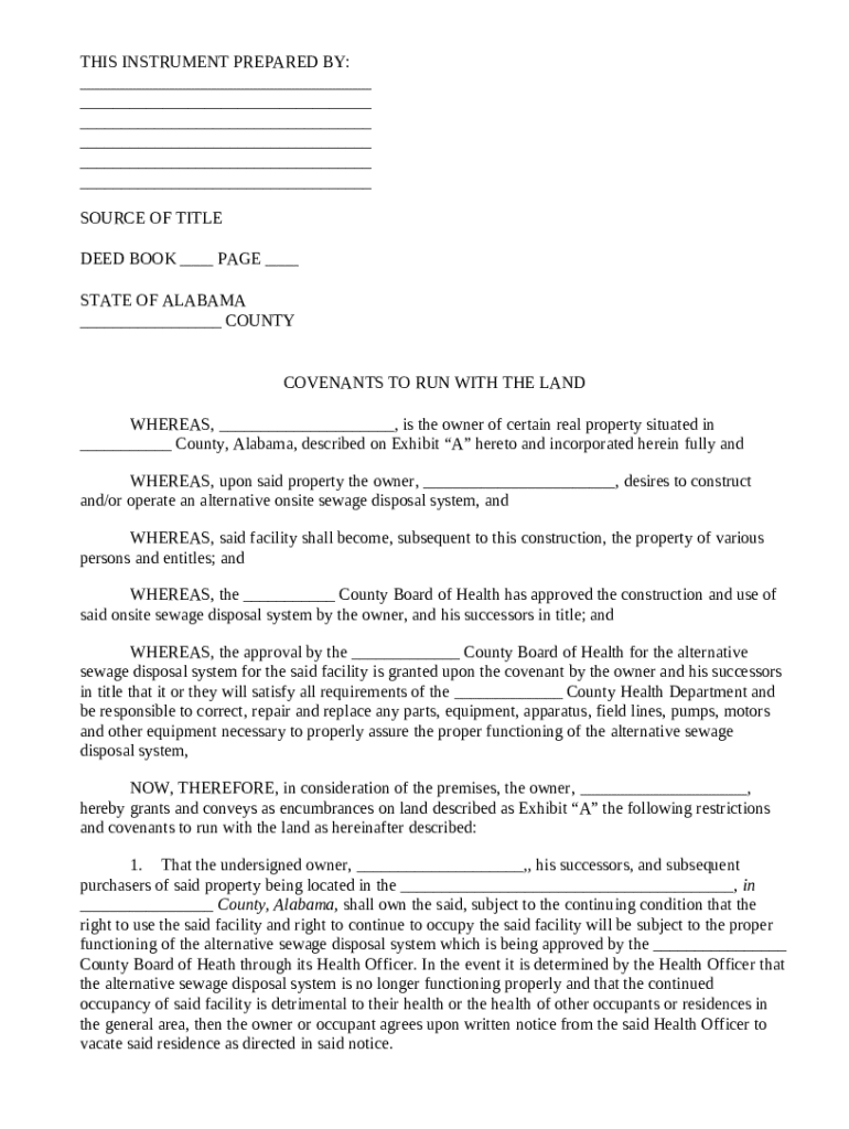 Compliance with local regulations is non-negotiable when dealing with covenants. In Alabama, understanding local health regulations regarding sewage systems is crucial. Engaging with local health authorities early in the approval process can help streamline compliance and ensure all necessary documentation is submitted.