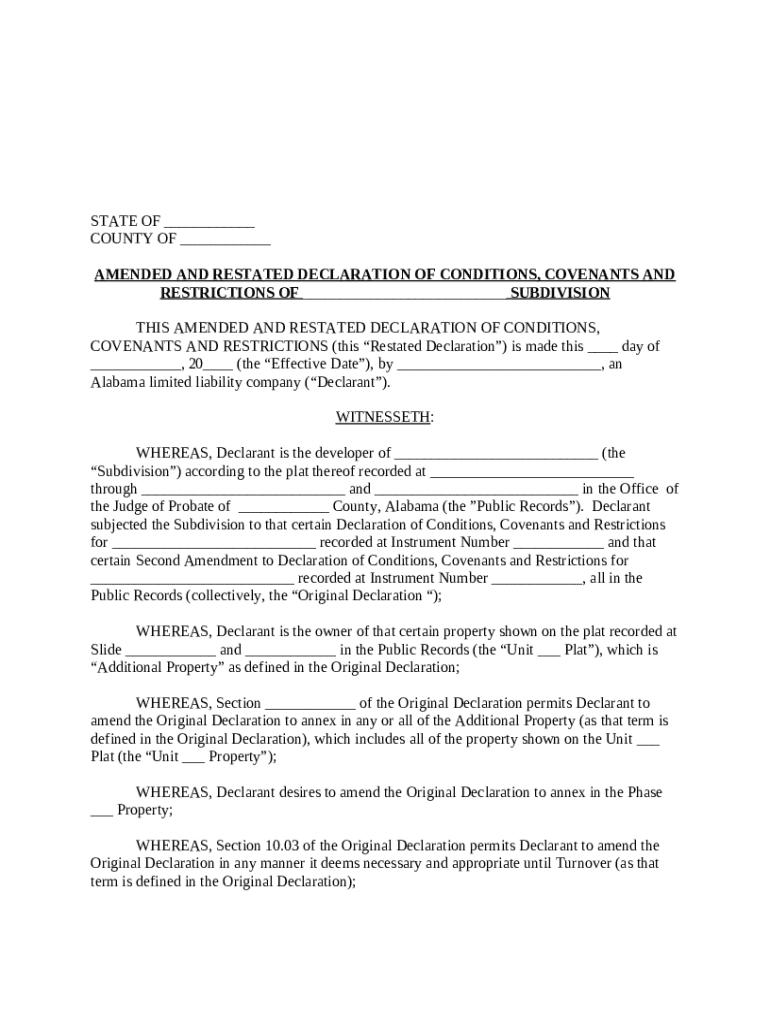 Get the free Amended and Restated Declaration of Conditions, Covenants and Restrictions of Subdiv...