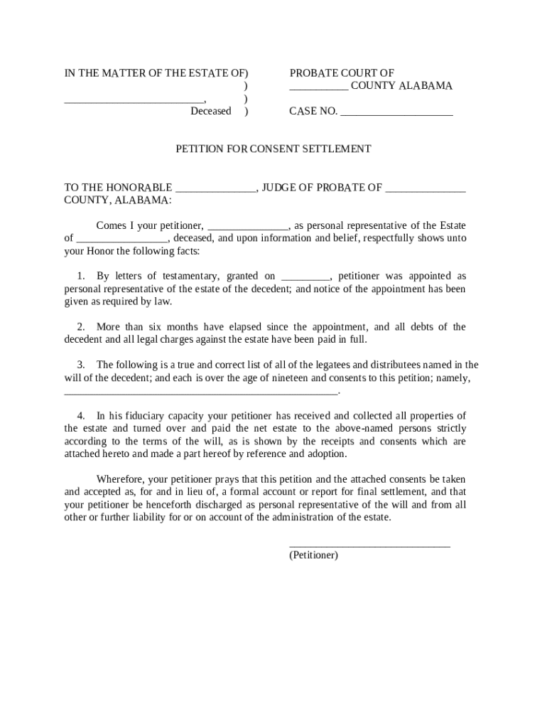 Comprehensive Guide to Petition for Consent Settlement Form