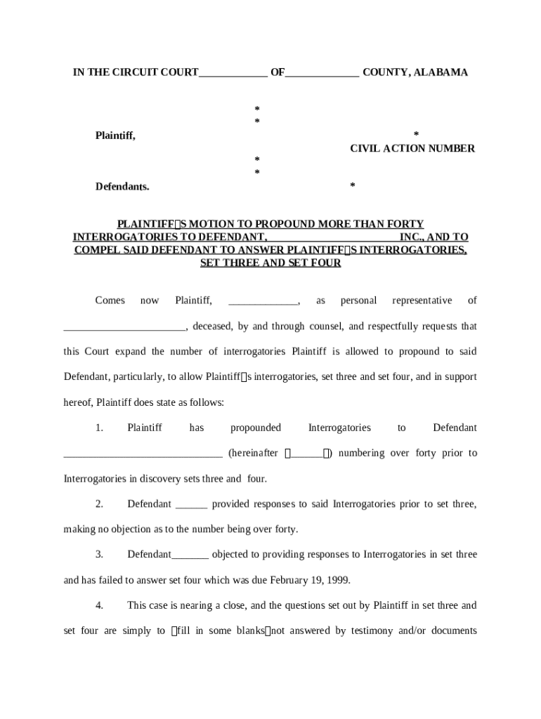 Get the free Motion to Increase Number of Interrogatories template