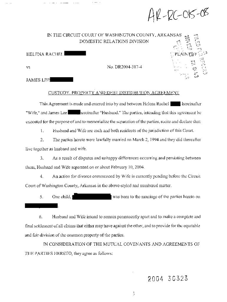 A08 Custody, Property, and Debt Distribution Agreement in Divorce with Children