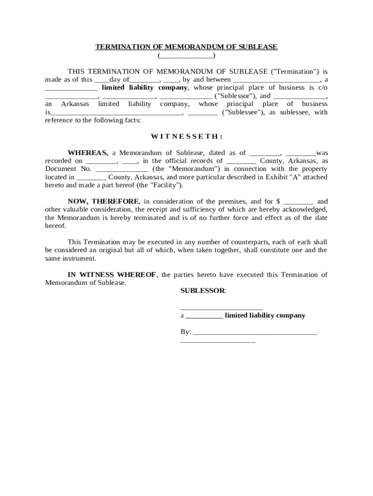 This Memorandum terminates the commercial sub-lease, The provisions of the sub-lease are restricted to the terms of the original lease.