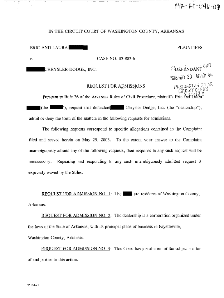 Get the free A03 Request for Admissions