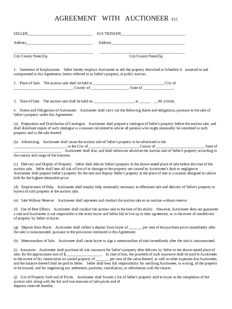 An auctioneer contract is a legal agreement between an auctioneer and a client that outlines the terms and conditions of an auction event.