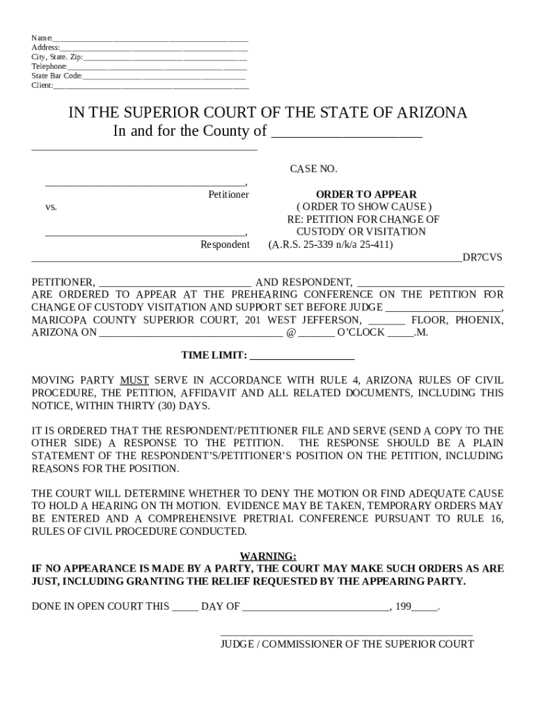Proper submission and service of the order to appear is defined by local rules. In accordance with Arizona Rule 4, ensure you serve the completed form to the other party within the required timeframe.