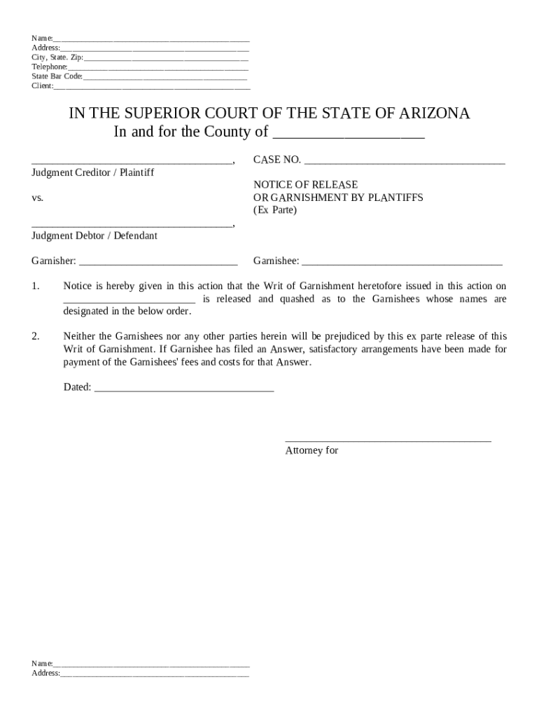 Get the free Notice of Release of Garnishment and Order template