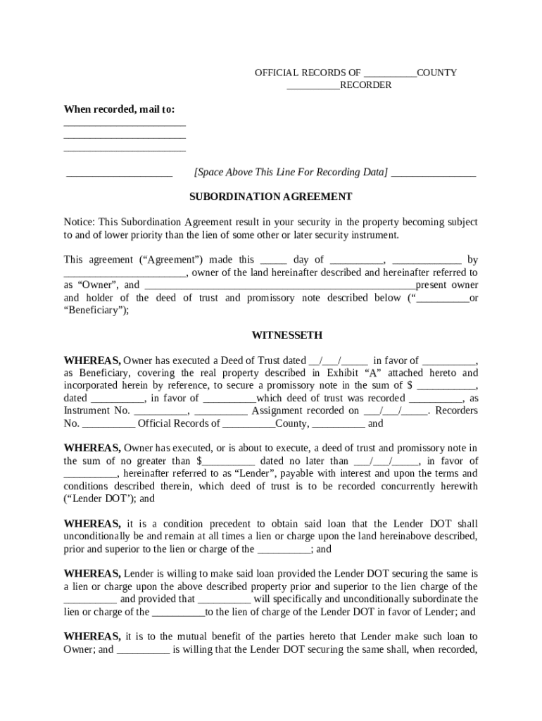 Each state has regulations governing subordination agreements. Familiarize yourself with these to ensure enforcement.