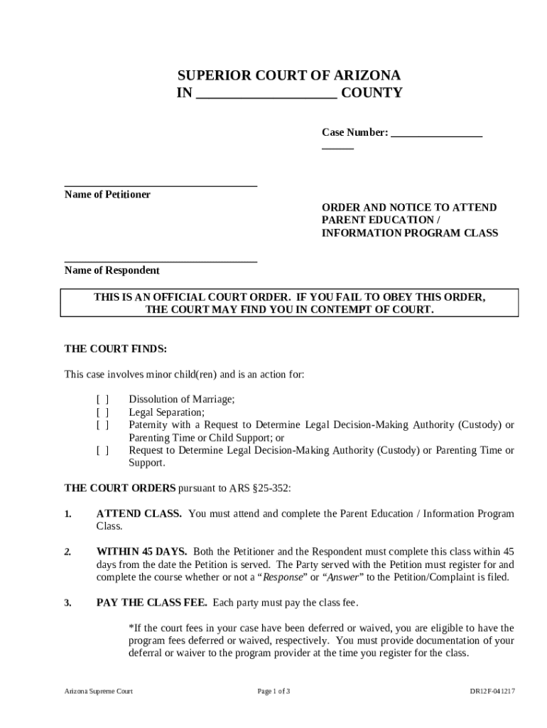 Completing the parent information program order form is essential for fulfilling court obligations related to custody and minor children, particularly in Arizona.