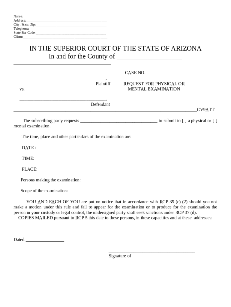 A request for physical or mental examination is a formal document that allows parties, often in legal settings, to seek an evaluation of a person's physical or mental state. This examination can be crucial in legal cases, insurance claims, or settlement negotiations. Understanding the specifics of when such an examination is required is essential to ensure compliance and to safeguard legal interests.