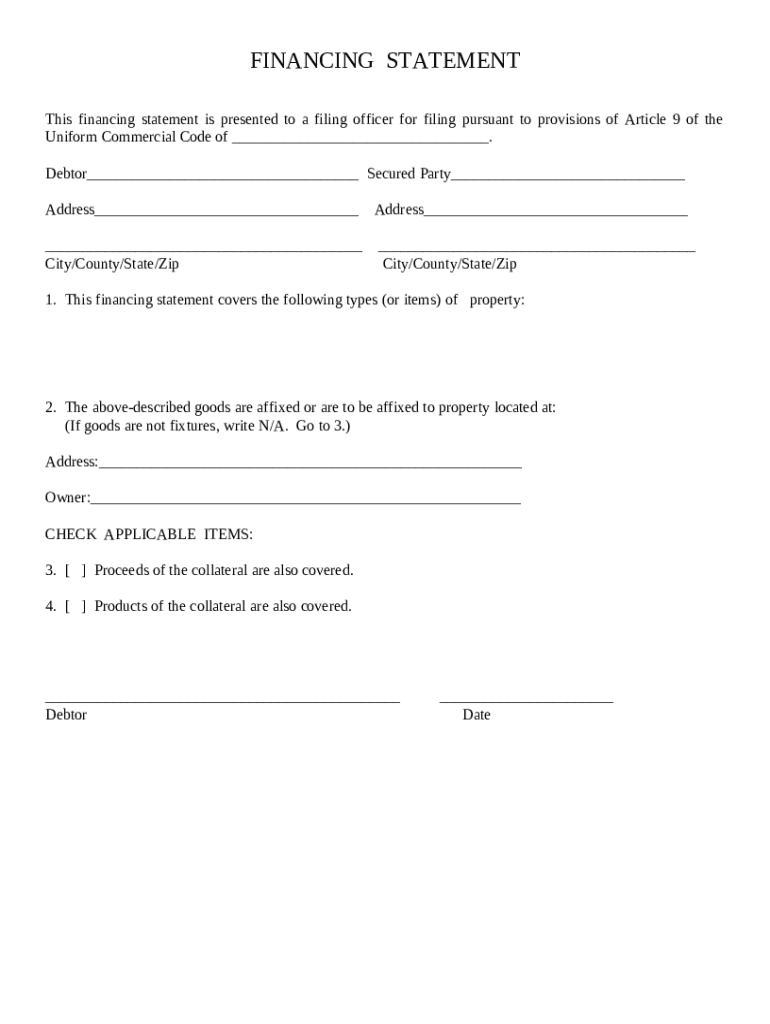 Get the free Financing Statement template