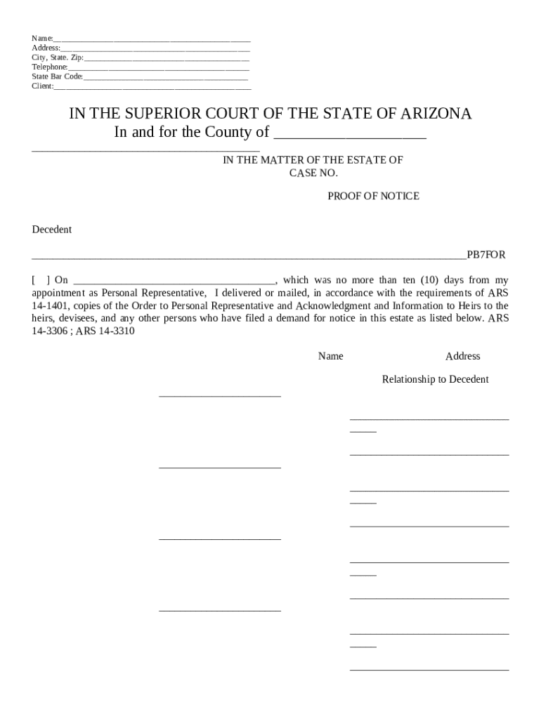 Understanding and complying with legal requirements surrounding the proof of notice is essential to avoid complications. Various statutes, such as ARS 14-1401, define specific obligations for personal representatives.