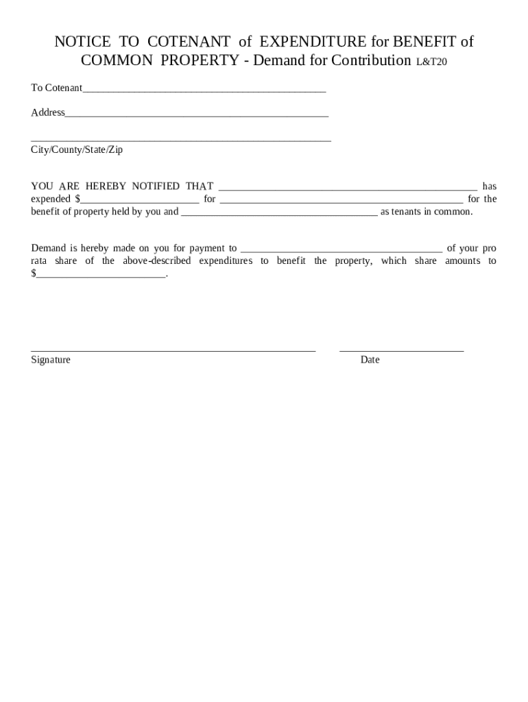 The notice of intent to form form is a vital document within real estate, especially for tenants in common. It serves as a formal notification to co-owners when one party intends to incur shared expenses related to jointly owned property. This form ensures transparency and allows all parties to be aware of their responsibilities.