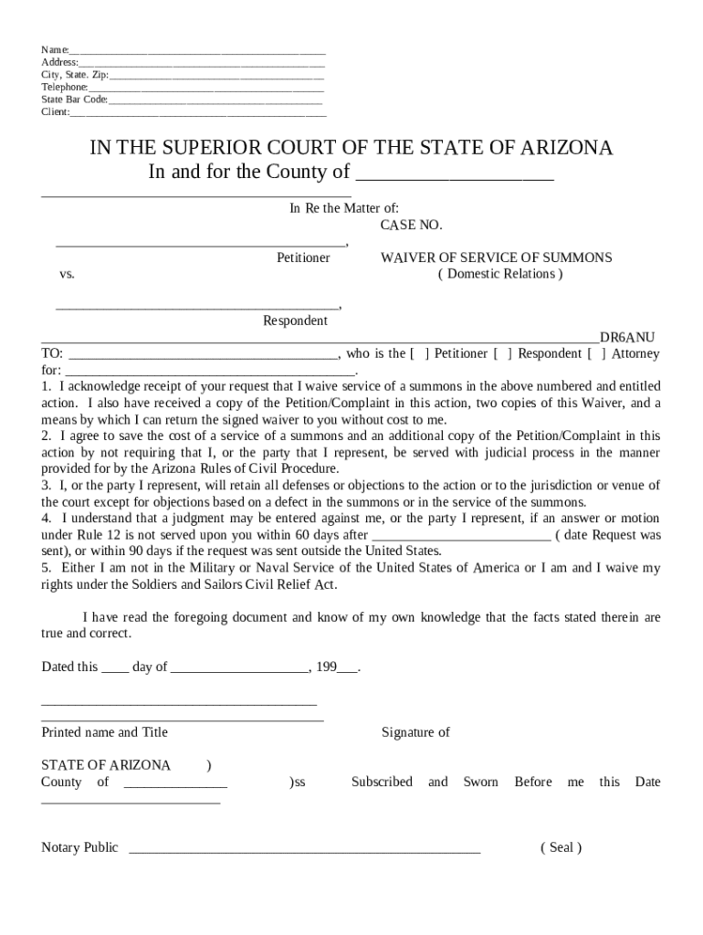 The acceptance of service waiver form must meet specific legal standards set by the Arizona Rules of Civil Procedure. Understanding regional requirements can be pivotal.